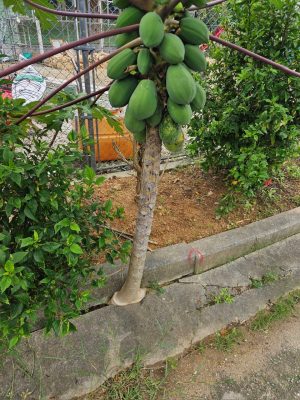 沖縄ではおなじみ、パパイヤの木です。